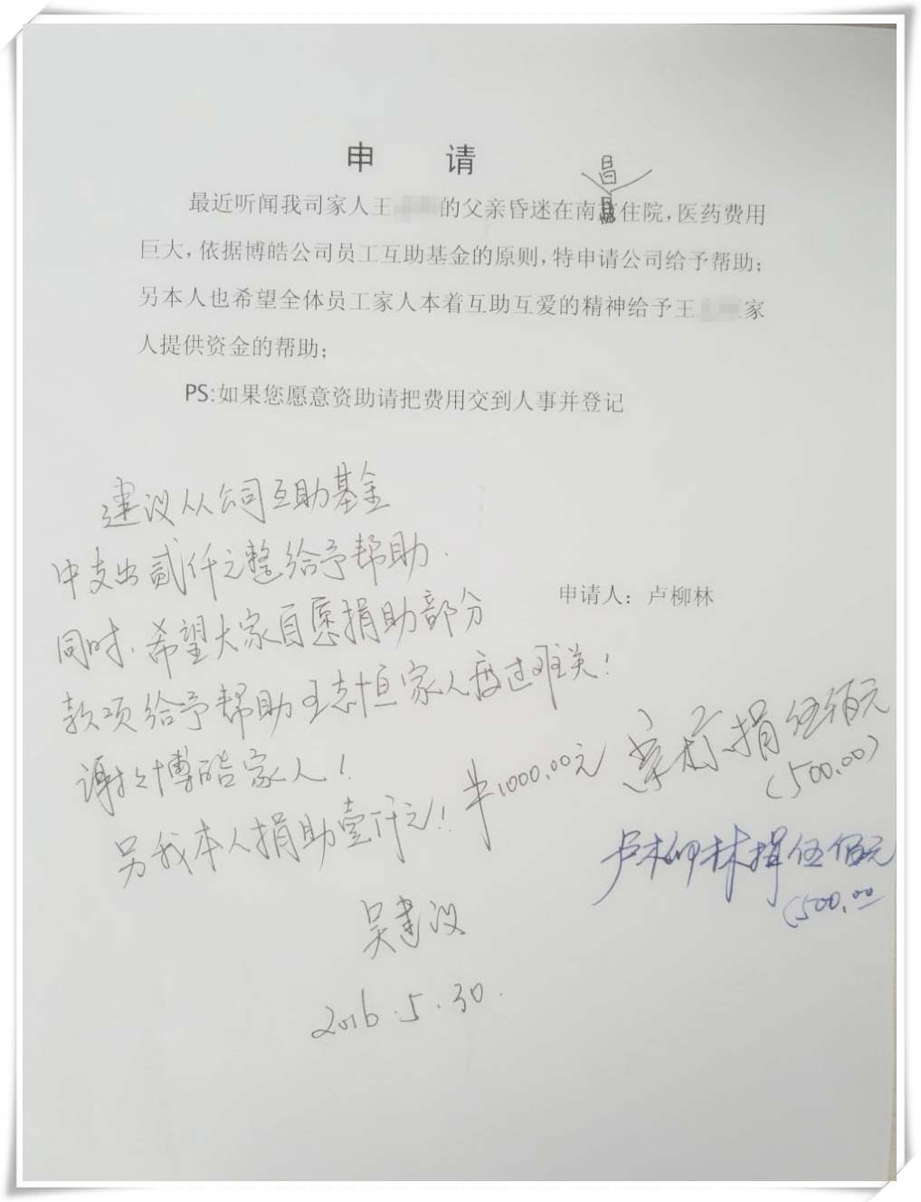 2016年6月伊始,大家都在為幸福生活忙碌之際,一個(gè)噩耗從天而降。博皓硅橡膠制品廠優(yōu)秀員工小王的父親因隱球菌性腦膜炎在醫(yī)院昏迷不醒。此對(duì)于這個(gè)風(fēng)雨飄搖的小家庭不異于雪上加霜。