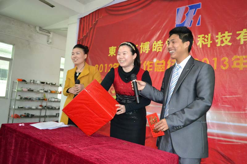 因2012年底生產訂單任務繁重,公司年會推遲到2013年開工后召開。在2013年2月24日,元宵節的下午,公司全體同仁歡聚一堂,在公司飯堂召開了此次會議。