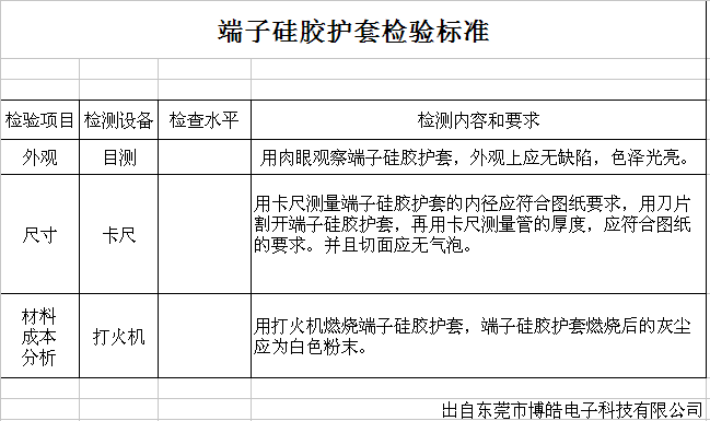 3、材料成本分析:用打火機(jī)燃燒端子硅膠護(hù)套,端子硅膠護(hù)套燃燒后的灰塵應(yīng)為白色粉末。