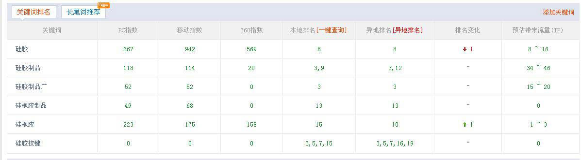 其實(shí)這個(gè)真的是有技巧的,小編當(dāng)時(shí)在優(yōu)化時(shí),就將硅膠制品行業(yè)所有的有百度指數(shù)的關(guān)鍵詞羅列一編,選出了一批適合我們博皓官網(wǎng)優(yōu)化的關(guān)鍵詞,例如我們首頁選定的“硅膠|硅膠制品|硅膠制品廠|硅橡膠制品|硅橡膠|硅膠按鍵”,硅膠、硅橡膠都是我們行業(yè)大指數(shù)的關(guān)鍵詞,如果可以免費(fèi)優(yōu)化上來對網(wǎng)站權(quán)重提升有很大作用,但這類關(guān)鍵詞是非常難優(yōu)化上來的,需要常年累月的堅(jiān)持做SEO。
