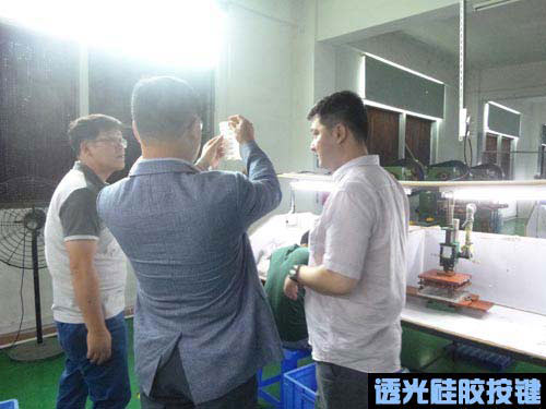 上圖為Cisco領(lǐng)導(dǎo)對(duì)我司生產(chǎn)的透光硅膠按鍵進(jìn)行了解。