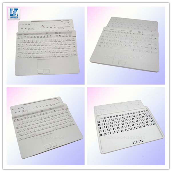 隨著平板電腦、智能手機等數(shù)碼產(chǎn)品的廣泛普及使用,對應(yīng)的藍牙外接鍵盤的需求量也就相應(yīng)的越來越大。鍵盤按鍵的材質(zhì)也由塑膠在向硅膠轉(zhuǎn)變,而這主要是硅膠的特性決定的。越來越多的藍牙外接硅膠鍵盤按鍵在硅膠制品廠開模生產(chǎn)。
