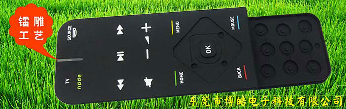 2014年12月就快到來,趁著還沒到12月,小編跑到博皓電子車間后檢部,跟各位老員工學習了一款遙控器套后檢知識,今天就拿出來給跟大家分享分享,下面小編先曬一張鐳雕工藝的遙控器套,圖片如下: