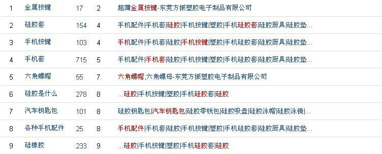 和我們博皓電子有交換友情鏈接,他們的網(wǎng)絡(luò)優(yōu)化情況比較熟悉,他們的網(wǎng)站很多硅膠方面的長尾關(guān)鍵詞可以通過百度搜索到,缺點是一些有百度指數(shù)的主關(guān)鍵詞有排名首頁的并不多,還需要加油中。