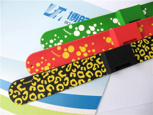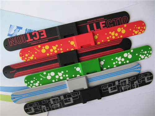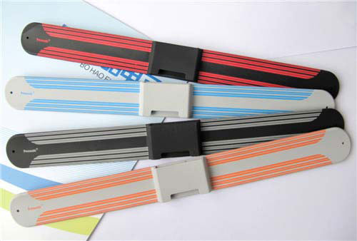硅膠拍拍帶是近市場比較流行的一款運動型產品的附屬品,產品主要是運用在電子手表,脈搏測試儀或者純屬裝飾品。這種產品因為顏色比較多,經過的各段的工藝流程比較復雜。而博皓電子在經過不到4年的發展已經擁有3個工廠的生產規模,目前擁有成型機器42臺,生產需要的相應絲印設備噴涂設備一應俱全,并且每個工廠能維持在150人的生產力,所有的工藝均是在本廠內部完成。
