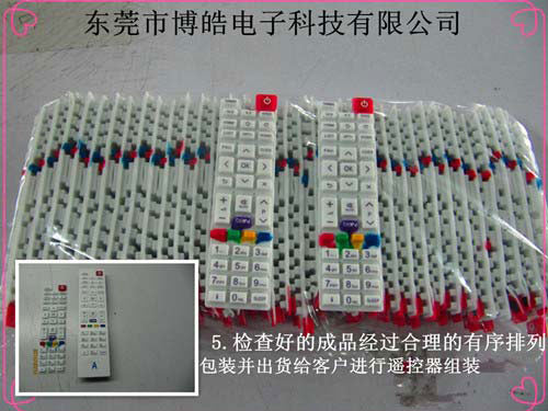 東莞市博皓電子科技有限公司是硅膠遙控器按鍵、電子詞典按鍵、P+R電子產品按鍵、防振硅橡膠腳墊、硅橡膠雜件、各類手機按鍵等產品專業生產加工的有限責任公司,公司總部設在東莞市橋頭鎮朗廈村景盛路98號,擁有完整、科學的質量管理體系。下面為大家介紹遙控器按鍵的實際實地生產流程: