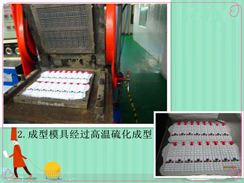 2.用已經開好的硅膠模具進行硅膠原材料的高溫高壓硫化成型,如圖: