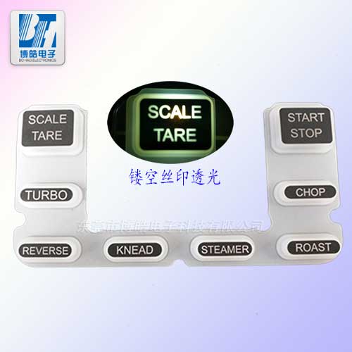 - 產品簡介:本款硅膠產品是用于家用電器上的硅膠按鍵,采用綠色環(huán)保的硅膠原料模壓成型,鏤空絲印工藝透光效果。