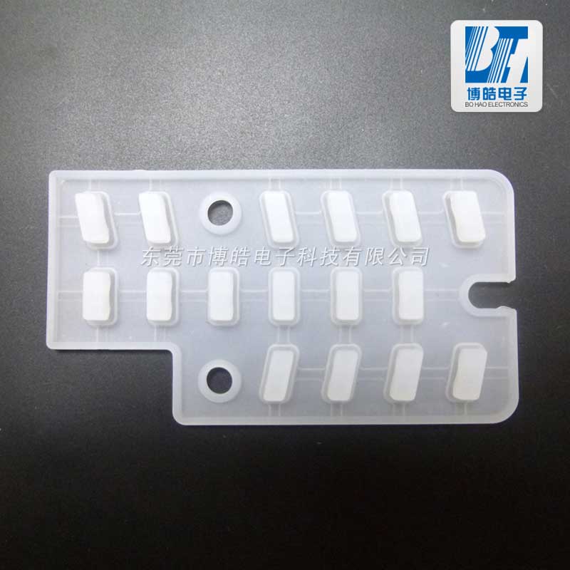 - 產品簡介:這是一款用于空調遙控器的內襯硅膠按鍵,采用潔白色硅膠原材料,按鍵彈性壁好、耐磨,如需其他款式規格博皓也可為您開模定制。