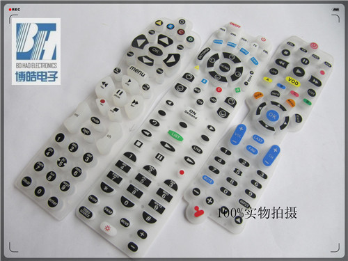 - 產品簡介:產品名稱:硅膠遙控器按鍵 工藝特點:1.硅膠產品表面采用多種顏色絲印 2.表面的顏色多次采用套色絲印,增加表面的美觀效果