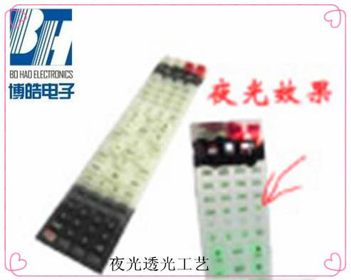 夜光硅膠按鍵指在硅膠原料中加入了一定比例的熒光粉,使用硅膠按鍵能夠在黑暗的環境下發出夜光。如圖: