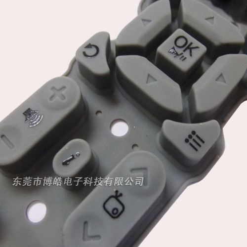 - 這是一款用于有線數字電視機頂盒的遙控器按鍵,采用硅膠原材料制造而成,在每個小按鍵的底部都配有導電油墨,可以起到導電效果。博皓電子也可為客戶提供鐳雕工藝、黑粒導電工藝的硅膠按鍵產品。