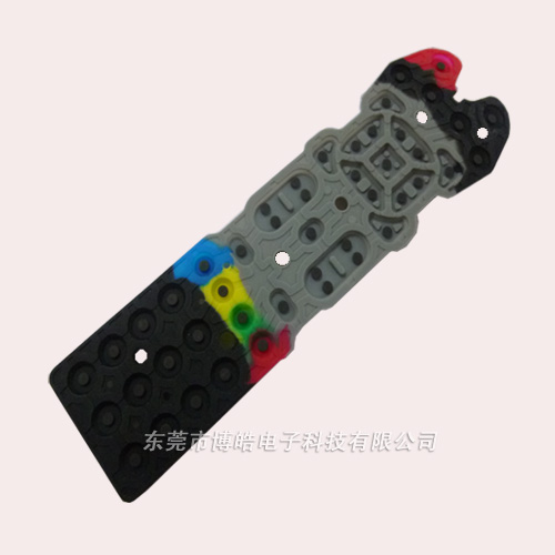 - 產品簡介:該產品適用于多功能液晶電視遙控器,采用黑色和深灰色作為主體,外加紅色開關按鍵,按鍵底部帶有導電油墨,可以起到導電效果。